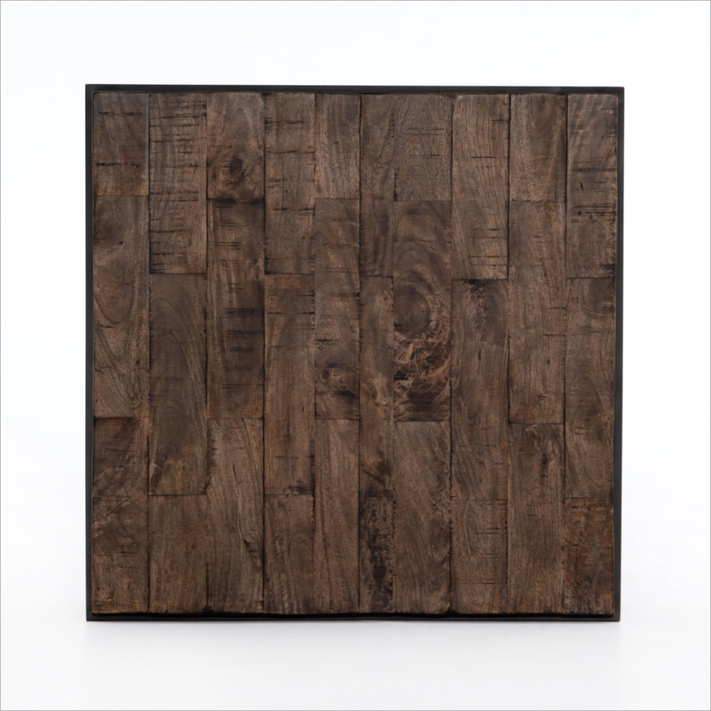 Le Capistrano est fabriqué en manguier massif, qui semble flotter dans son cadre fin en fer finition bronze. Une étagère inférieure offre un espace de rangement supplémentaire et une dimension supplémentaire, idéale pour tout espace de vie.