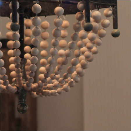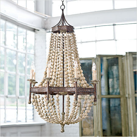 Avec ses perles de bois en cascade, le lustre Chelton transformera n'importe quel espace. Des bougies vintage et des fleurons verdi vieillis lui confèrent une touche d'élégance subtile.