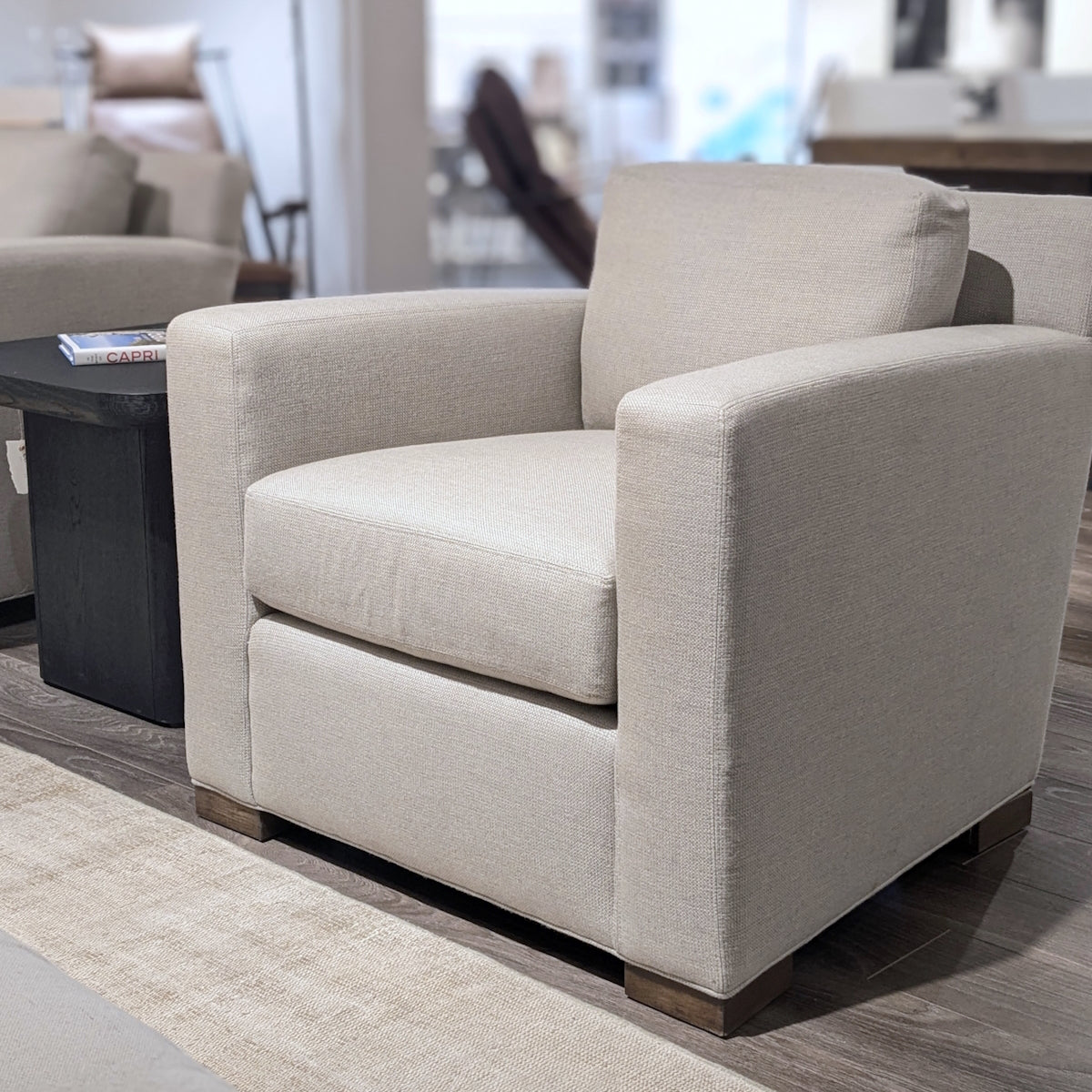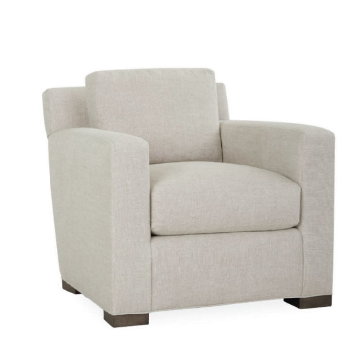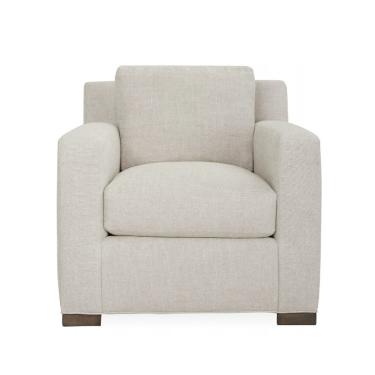 Ce fauteuil club discret est doté de coussins de dossier ultra-confortables garnis de duvet et de plumes, ainsi que de coussins d'assise recouverts de duvet, le tout reposant sur une structure de qualité noué main à huit points. Le tissu Performance résiste aux contraintes du quotidien et est rehaussé de surpiqûres élégantes. Tissu haute performance Michelangelo Cobblestone.
