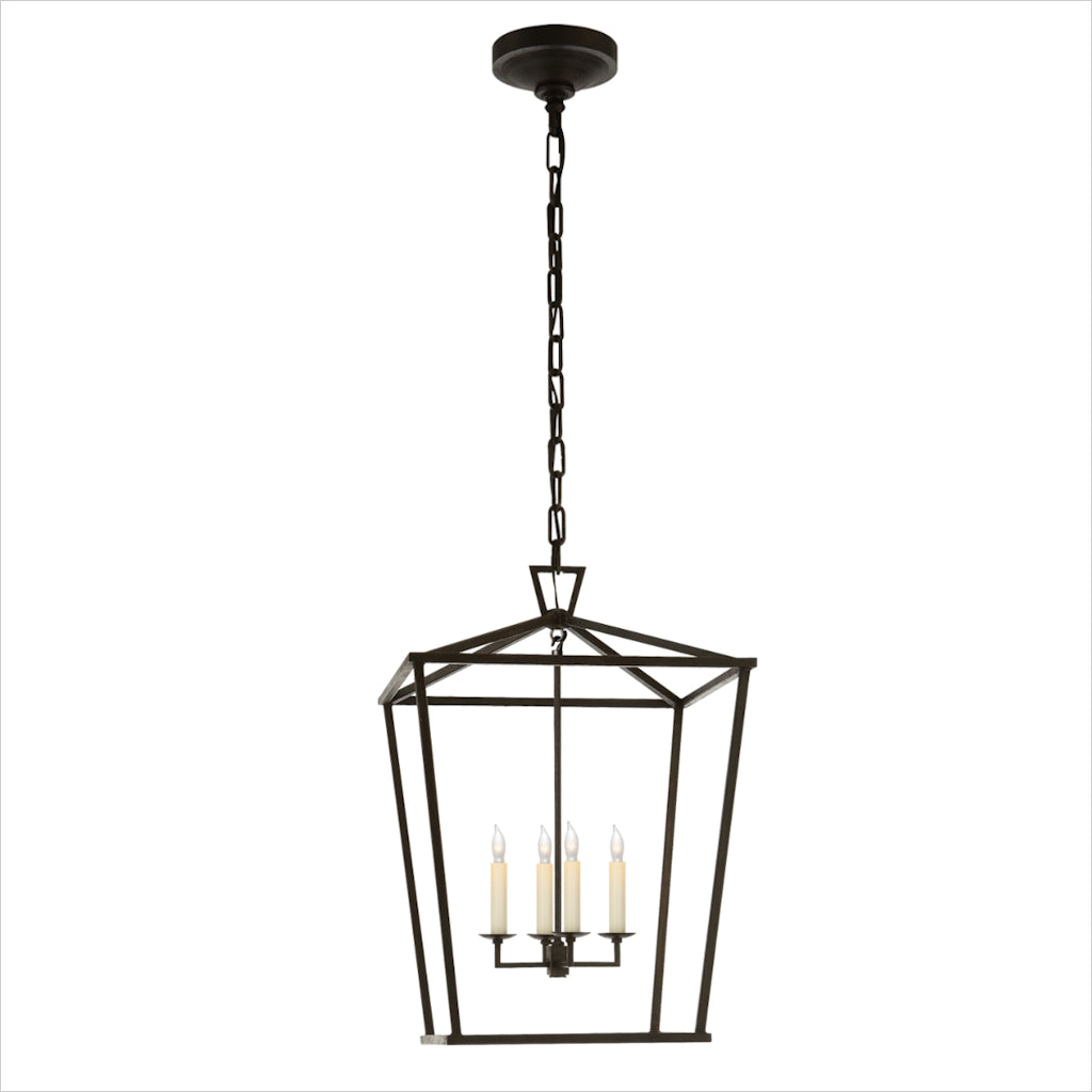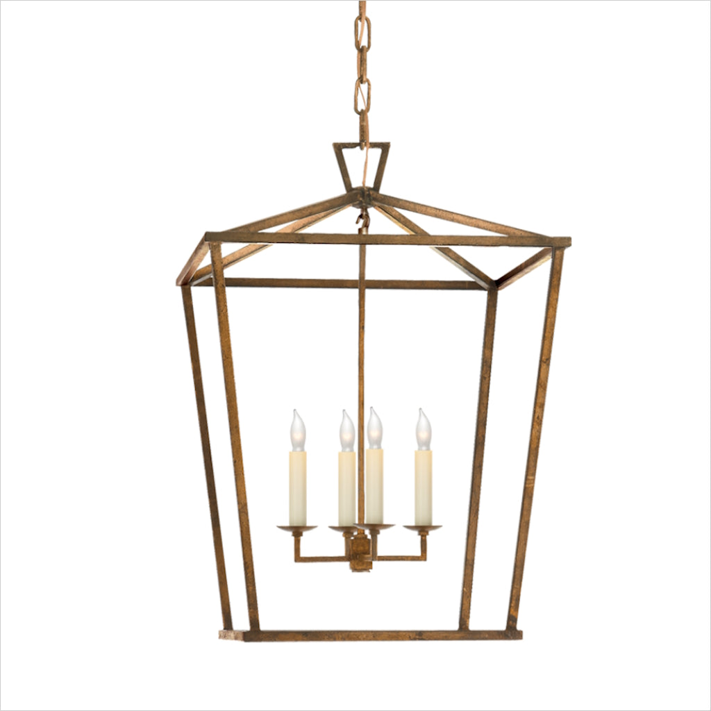 La lanterne Darlana abrite un mini-lustre encastré dans une structure en fer légèrement effilée. Ses éléments d'inspiration antique lui confèrent un style intemporel tout en diffusant une lumière fonctionnelle dans n'importe quel espace. Disponible en fer vieilli ou doré (finition feuille d'or) et en plusieurs tailles .