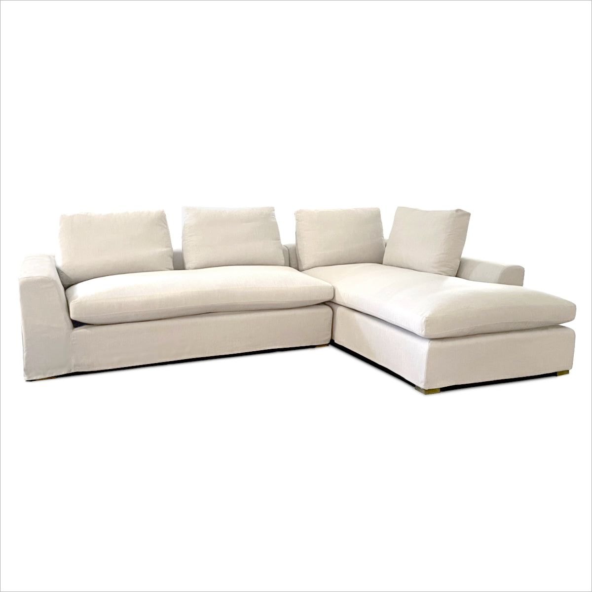 Issu de notre collection de marque maison, le canapé d'angle Del Mar offre des lignes décontractées et un confort optimal. Dès votre première assise, vous admirerez ses coussins en duvet et sa magnifique finition. Il est recouvert d'un tissu naturel orné d'une magnifique couture française pour un look épuré.
