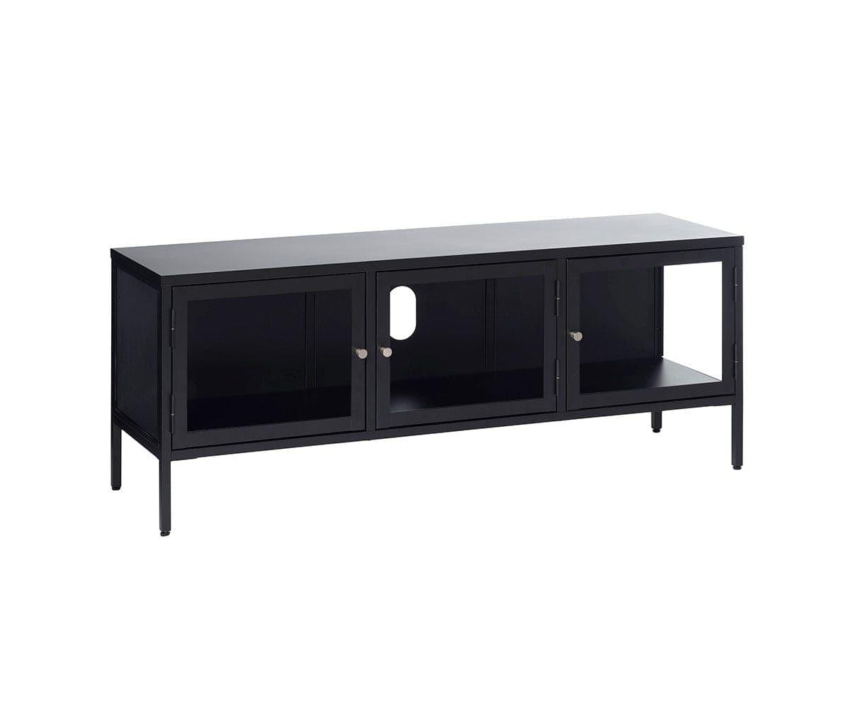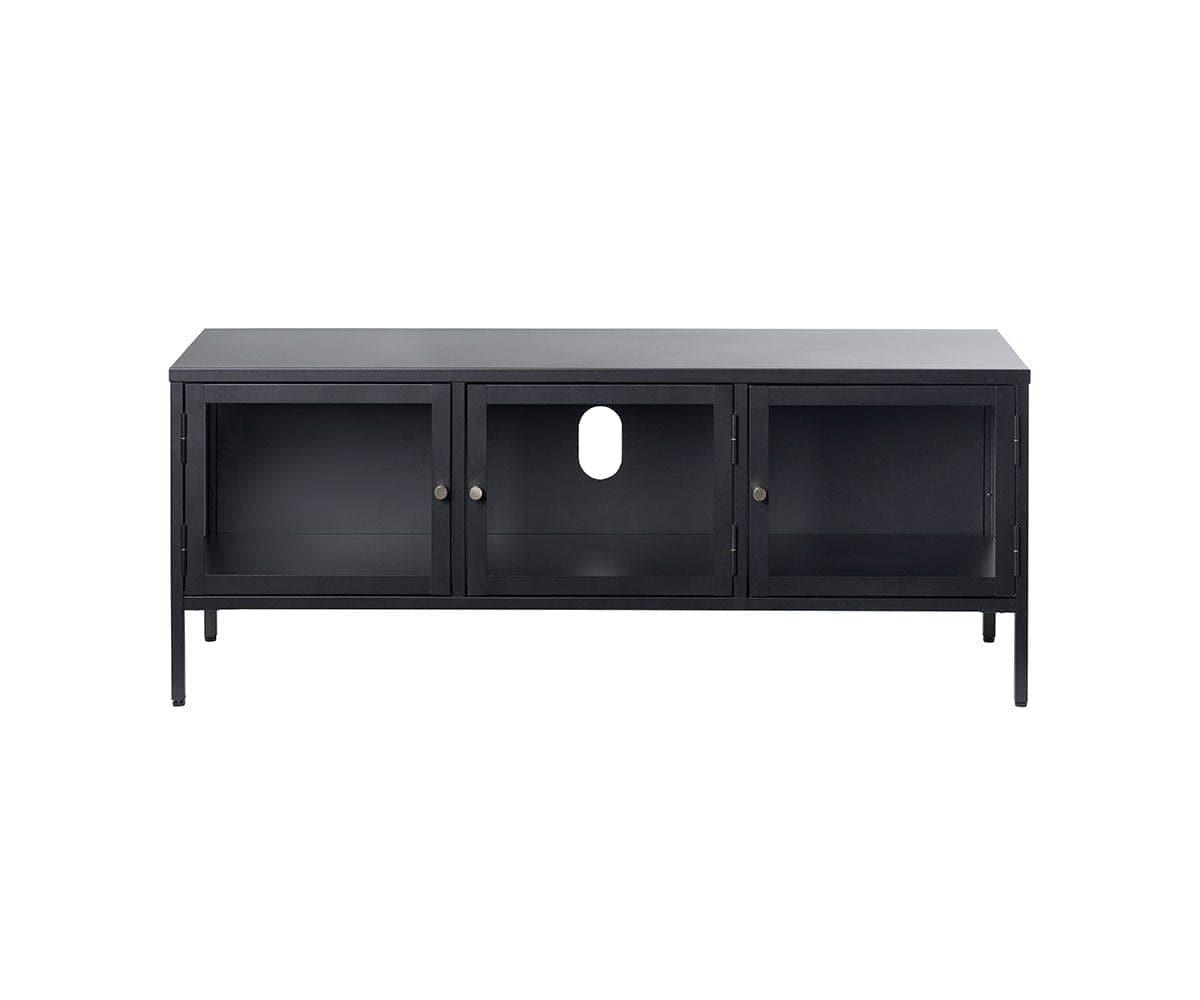Le meuble multimédia Dion est un ajout élégant et moderne à tout salon. Ses nombreux rangements vous permettent de présenter vos appareils multimédia avec style, tout en les gardant à l'abri. Une surface plane est idéale pour votre téléviseur, et des découpes pratiques pour l'organisation des câbles vous permettent de connecter vos appareils multimédias en toute simplicité. La collection Dion associe des portes et des côtés en verre trempé à une structure métallique robuste pour créer un style aérien, à la fois moderne et minimaliste. Grâce à sa quincaillerie platine et à ses lignes épurées, les meubles de cette collection s'intègrent facilement à une grande variété de styles.