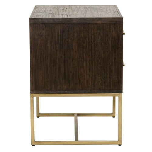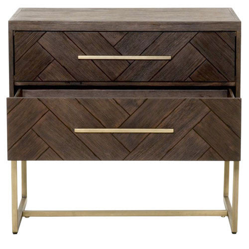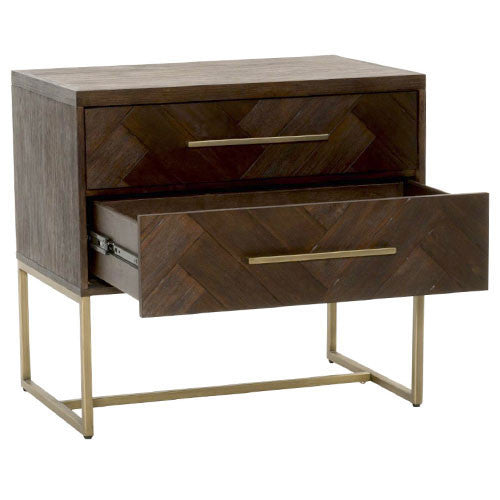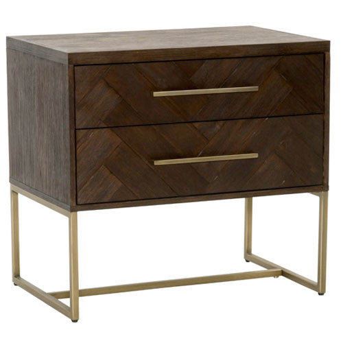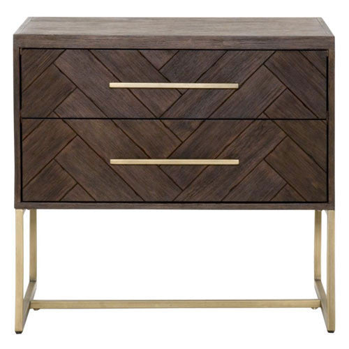 La table de chevet Fillmore est un élément élégant et sophistiqué pour une chambre à coucher. Ses deux tiroirs sont ornés d'une incrustation de bois à chevrons et de ferrures en bronze brossé. La finition Java rustique s'harmonise avec tous les styles de lit. Une commode double est également disponible.