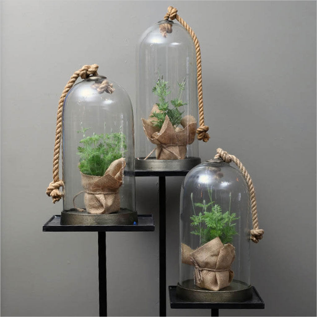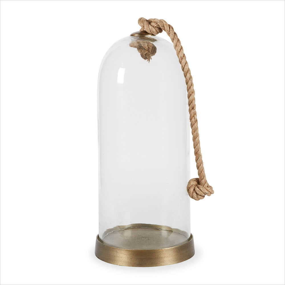 Créez votre propre décoration avec ce dôme en verre. Des reliques anciennes aux plantes en passant par les coquillages, il est doté d'une base en laiton antique, de verre soufflé à la main et d'une corde vintage.