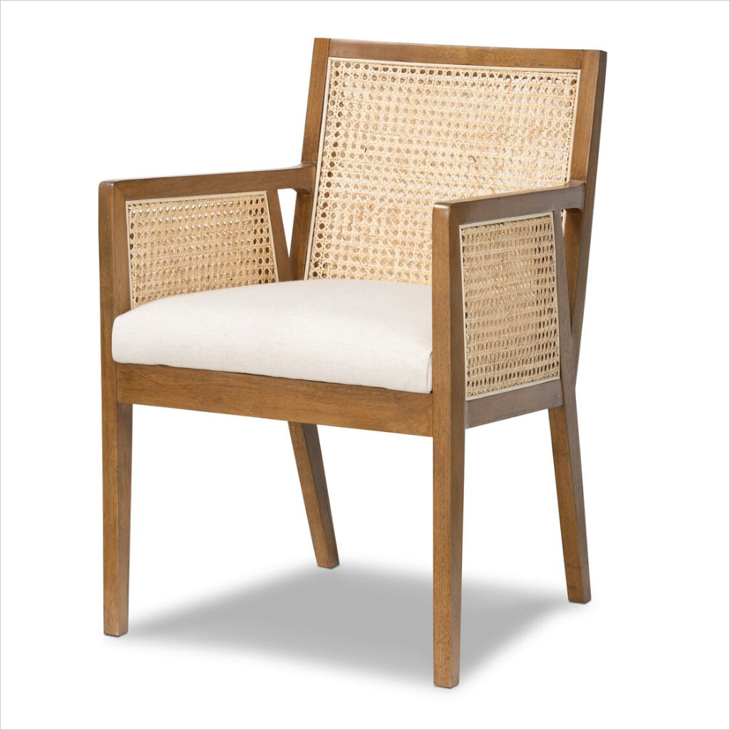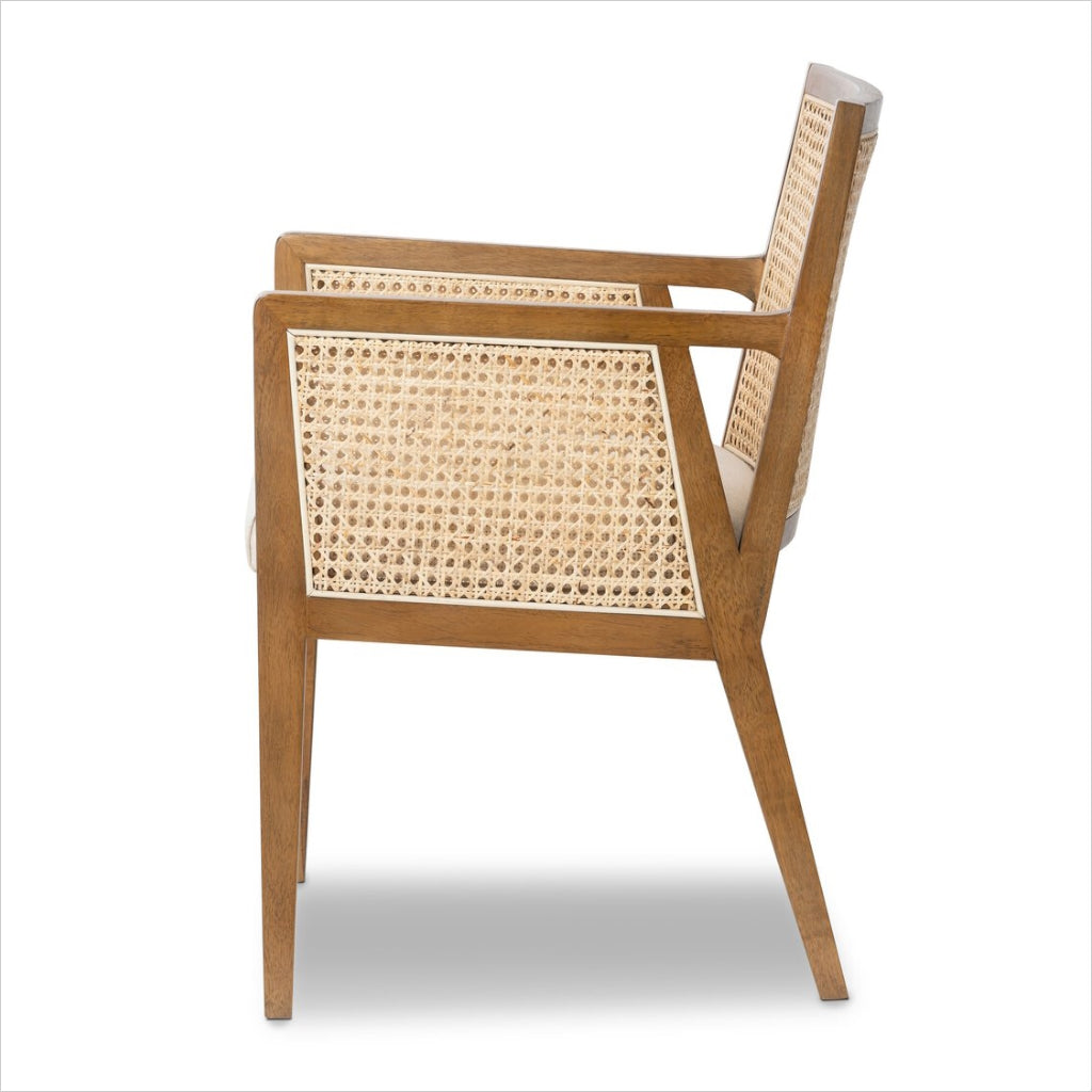 La chaise Grove allie bois et panneaux en cannage naturel pour un style intemporel. Son assise est recouverte d'un tissu performant, conçu pour résister aux éclaboussures et aux taches. Ce modèle polyvalent peut servir de chaise de salle à manger, d'appoint ou de bureau. Une version d'appoint est également disponible.