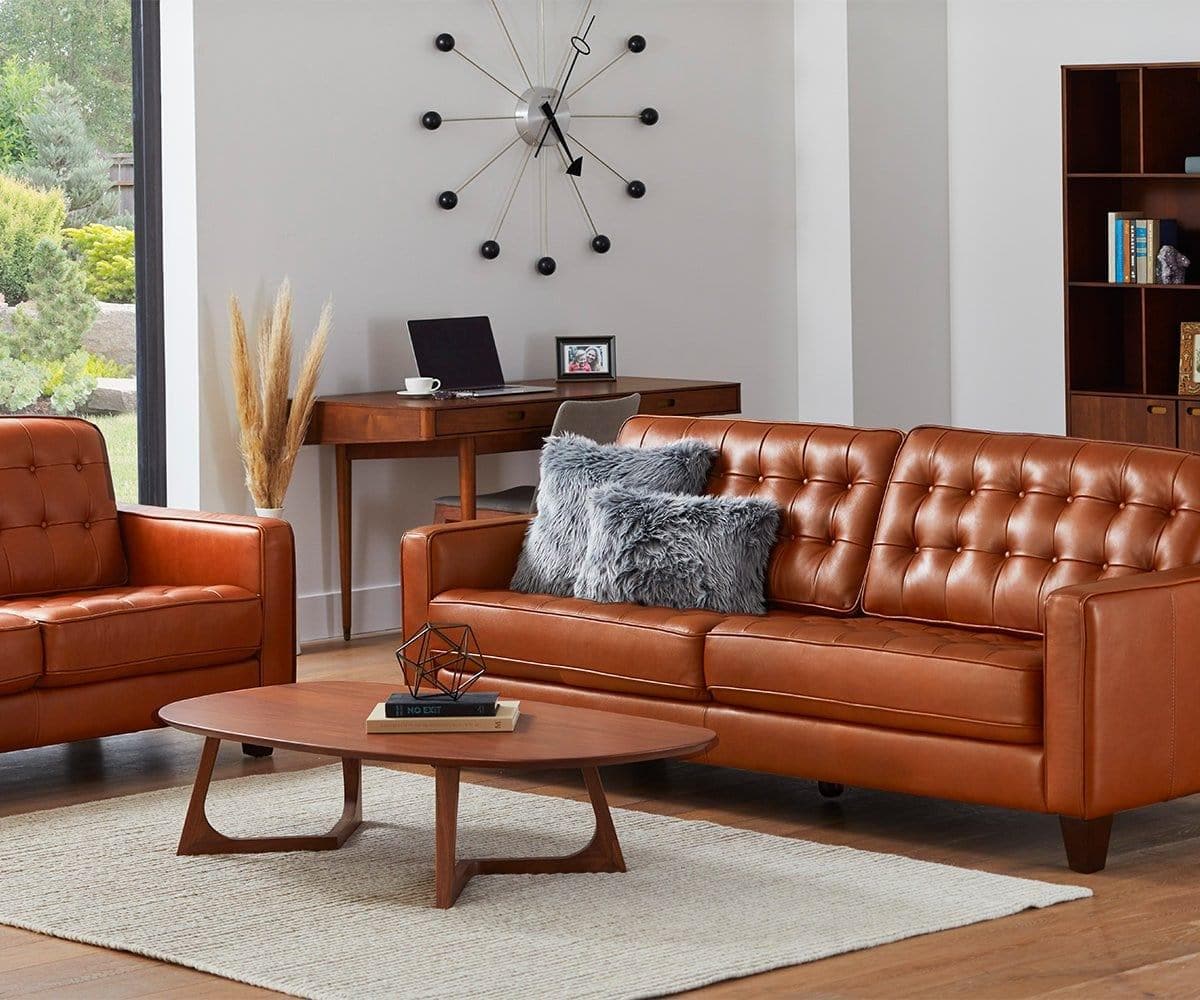 Bel exemple de modernité du milieu du siècle, le bureau Holfred allie le style populaire du passé à des éléments de design modernes. Reposant sur de hauts pieds fuselés ornés de capuchons en laiton, ce bureau présente deux ouvertures dissimulées sur le dessus menant à deux autres ouvertures ovales à l'arrière. Rangez vos câbles et cordons pour profiter pleinement de la surface lisse et gracieuse du bois. Deux tiroirs longs et fins offrent un espace de rangement, tandis que les découpes raffinées des poignées complètent son style classique.