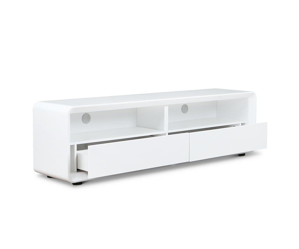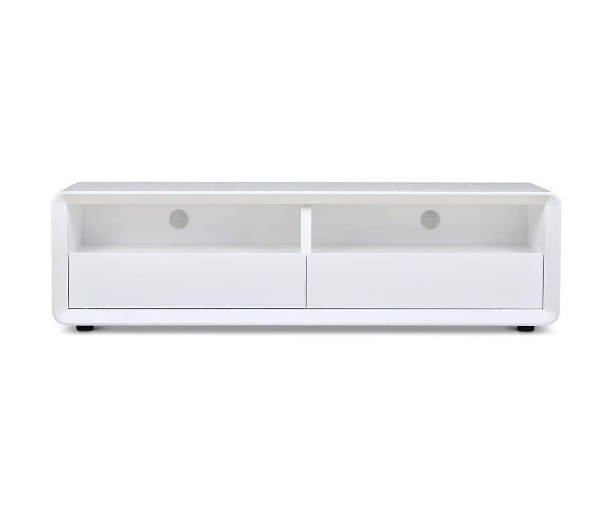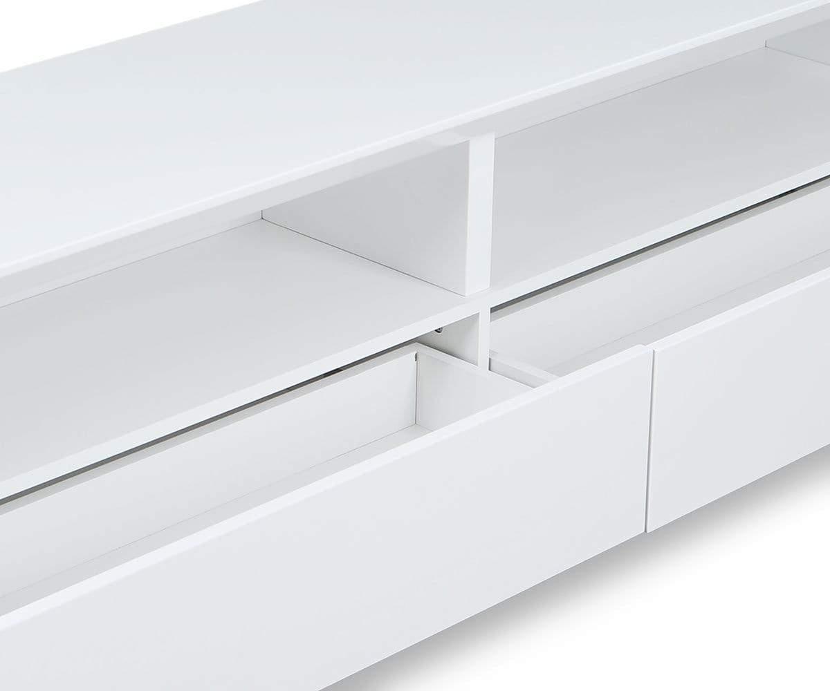 Faites un clin d'œil au futur avec le meuble multimédia Kopp, conçu pour un usage quotidien et un plaisir absolu. Cet ajout à votre salon ou espace de divertissement incarne l'élégance et la simplicité. Doté de deux grands tiroirs et d'un espace de rangement ouvert, il dispose également d'un système de gestion des câbles astucieux à l'arrière pour vos appareils électroniques. Que ce soit pour ranger du matériel ou exposer des objets de collection, ce meuble remplit sa fonction avec un style contemporain.