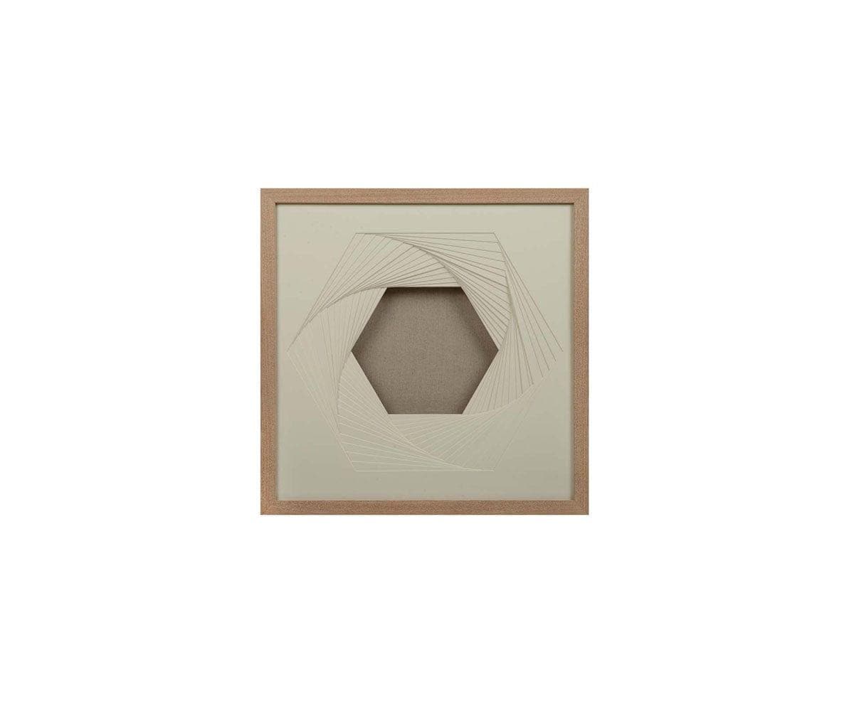 Ajoutez une touche artistique à votre espace grâce à l'œuvre d'art Symétrie Superposée. Réalisée en bois et papier crème, cette œuvre représente un hexagone dimensionnel. Une composition 3D met en scène des couches de papier superposées, chaque pièce étant légèrement inclinée, créant ainsi une superposition sinueuse. Le résultat est une œuvre d'art alliant profondeur créative et simplicité bienvenue de teintes neutres apaisantes. Les œuvres Réflexion Superposée et Tranquillité Superposée sont vendues séparément.