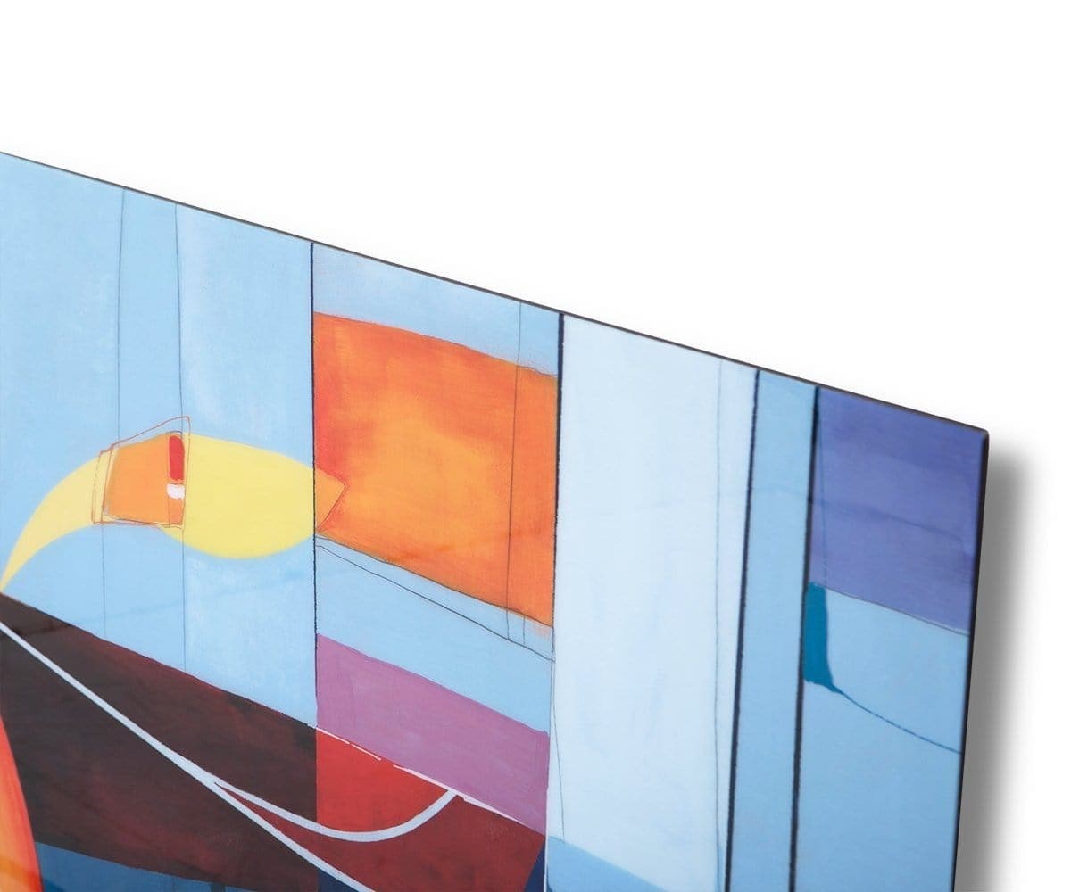 Abstraite, colorée et superposée, cette œuvre d'art mural s'intègre parfaitement aux intérieurs modernes, contemporains ou du milieu du siècle. Sa finition brillante rehausse son esthétique et son cadre plasma facilite son exposition.