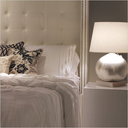Finitions : Abat-jour en lin blanc/Doublure en lin blanc/Base en fer argenté métallisé