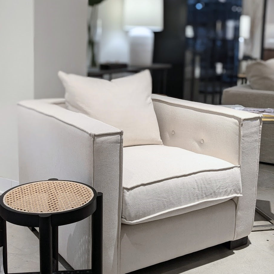 La chaise Nelson fait partie de notre collection de marque propre. Elle est confectionnée dans un tissu naturel doux, avec des accoudoirs droits et un capitonnage à boutons simple. Son confort est assuré par un coussin en duvet haute densité et un dossier enveloppant entièrement en duvet. Une suspension à ressorts noués à la main à 8 directions contribue à une assise exceptionnelle. Également disponible en cuir.