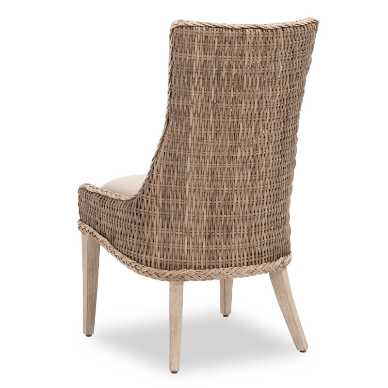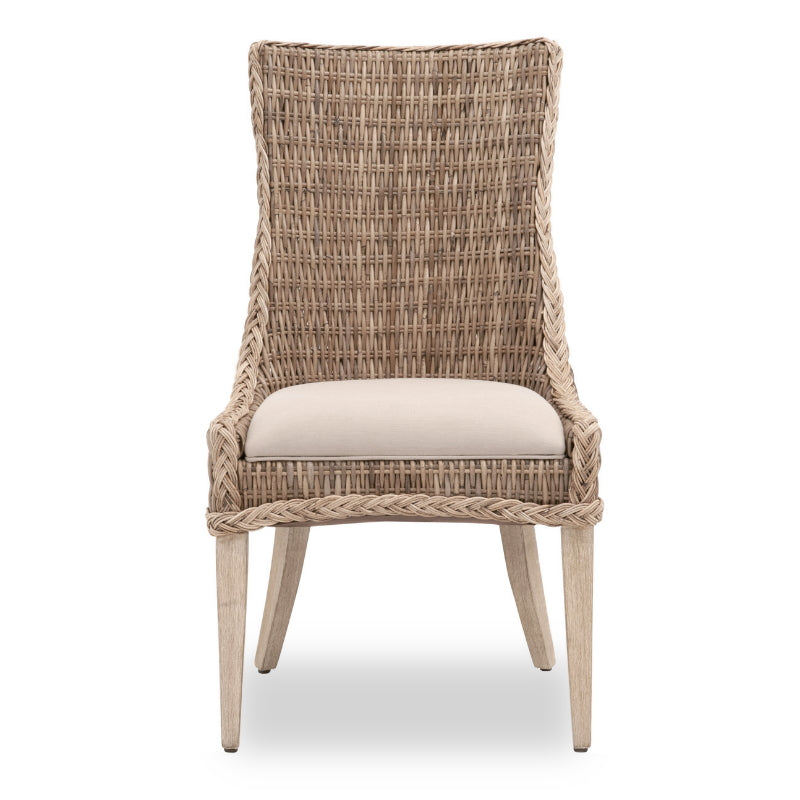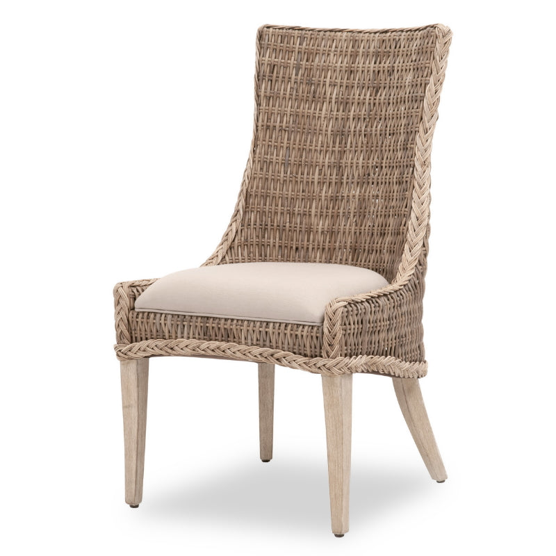 La chaise de salle à manger Newport est à la fois décontractée et élégante. Son osier gris Kubu est orné d'une bordure tressée et d'une assise capitonnée en lin gris clair, idéale pour s'harmoniser avec n'importe quelle table. Un tabouret de bar est également disponible sur commande spéciale.