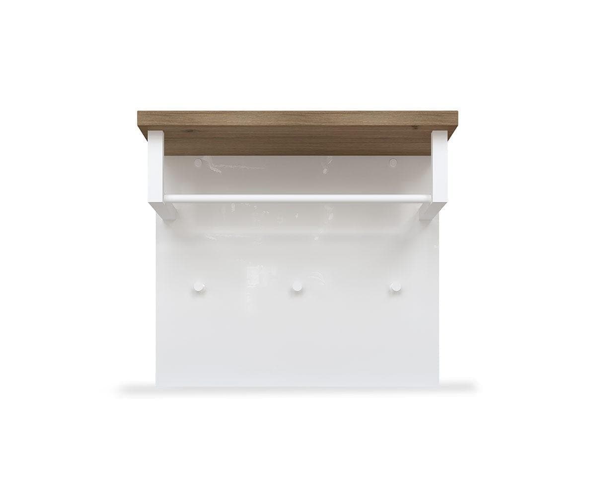 Fabriqué en Italie, le portant Oakley est conçu pour vous aider à organiser votre maison au mieux. Installez ce meuble mural pratique dans votre entrée pour créer un espace où suspendre manteaux, sacs, chapeaux et autres objets que vous souhaitez avoir à portée de main lors de vos déplacements. Ses lignes épurées contribuent à l'ordre général de votre espace. De construction robuste, il arbore des finitions blanc brillant et inspirées du chêne. Une étagère pratique surmonte une barre de suspension judicieusement placée pour vous permettre de suspendre vos affaires avec style.