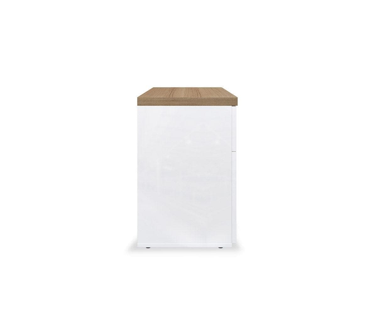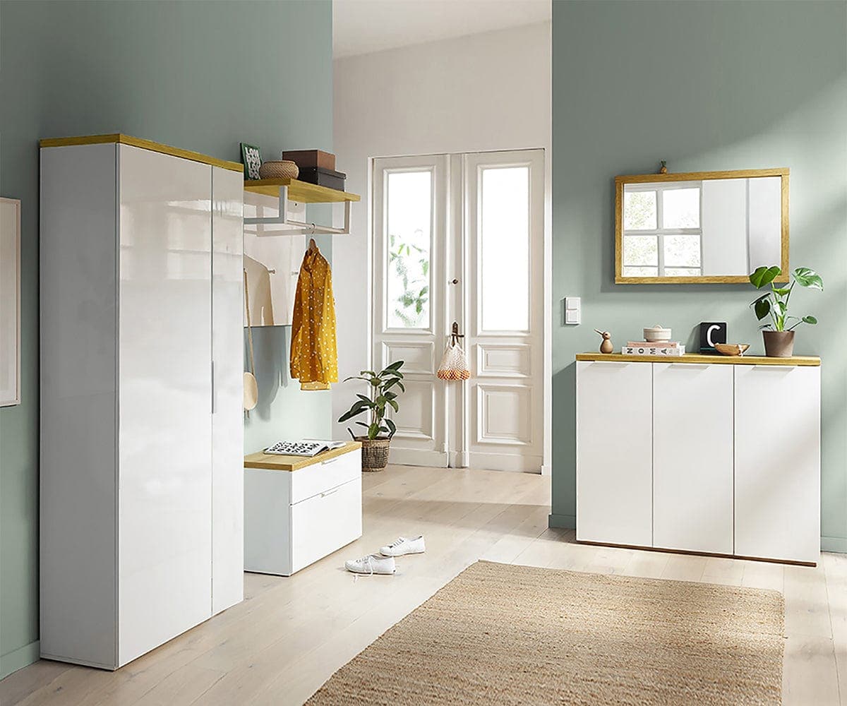 Fabriqué en Italie, le banc d'entrée Oakley est conçu pour vous aider à organiser votre maison au mieux. Placez-le dans votre entrée pour créer un espace de rangement pour vos chaussures, sacs et autres objets de la maison. De construction robuste et doté de finitions blanc brillant et inspirées du chêne, ce banc offre des étagères pratiques et de nombreux rangements. Un tiroir et un casier permettent de ranger vos affaires en toute sécurité, tandis que ses lignes épurées contribuent à l'ordre général de votre espace.