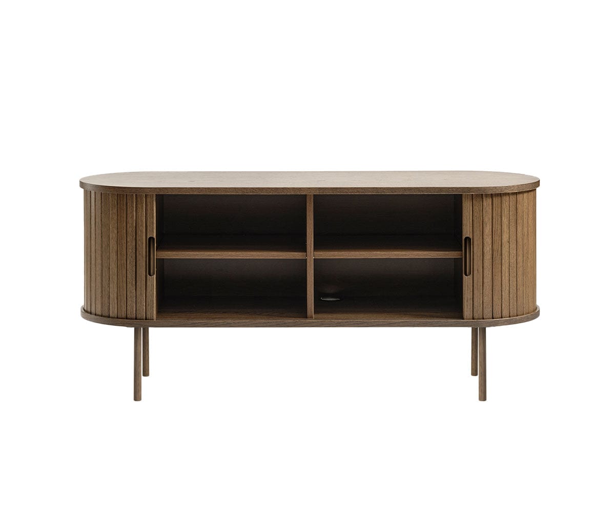Le meuble multimédia Orella est prêt à accueillir tous vos essentiels multimédia avec style. Jeux, consoles, télécommandes et bien plus encore : ce meuble offre de nombreux rangements et une surface spacieuse pour accueillir un téléviseur. Son piètement à panneaux tambour complète le tout. Parfaite pour les petits espaces, la collection Orella s'intègre parfaitement à tout espace moderne ou contemporain. Dotée d'un panneau tambour accrocheur, cette collection affiche un style élégant tout en conservant sa fonctionnalité.
