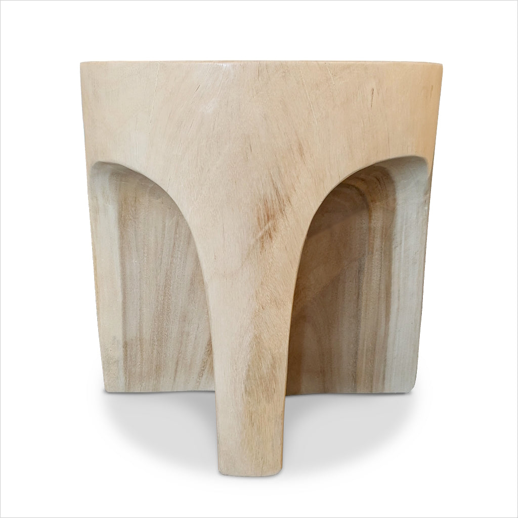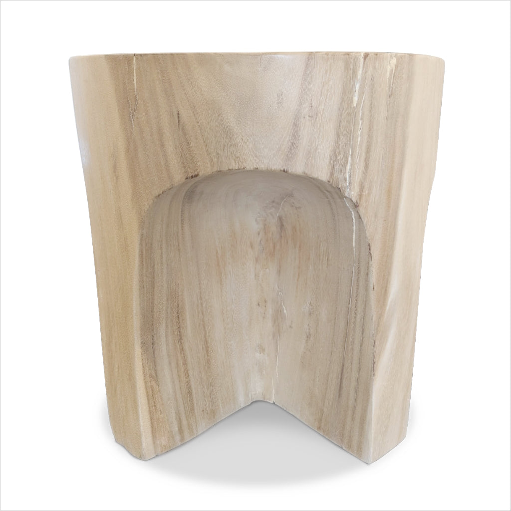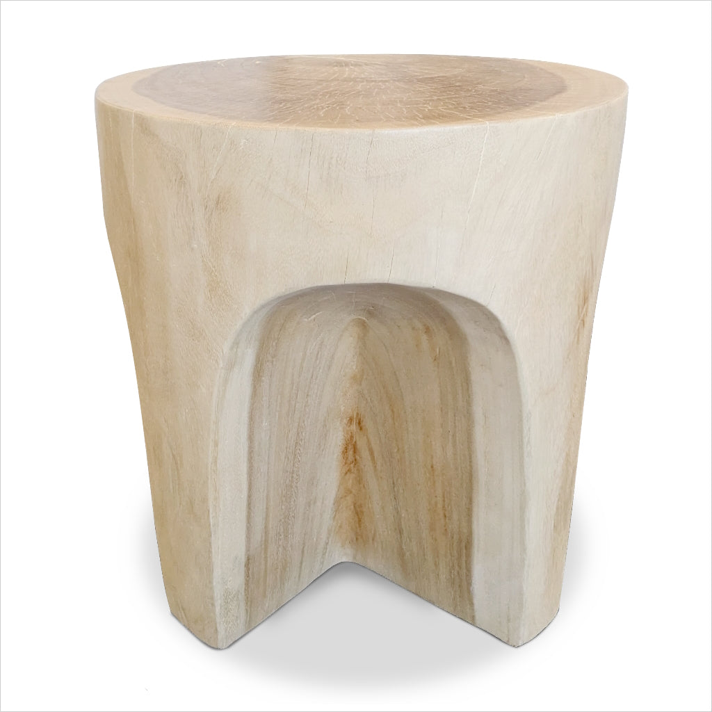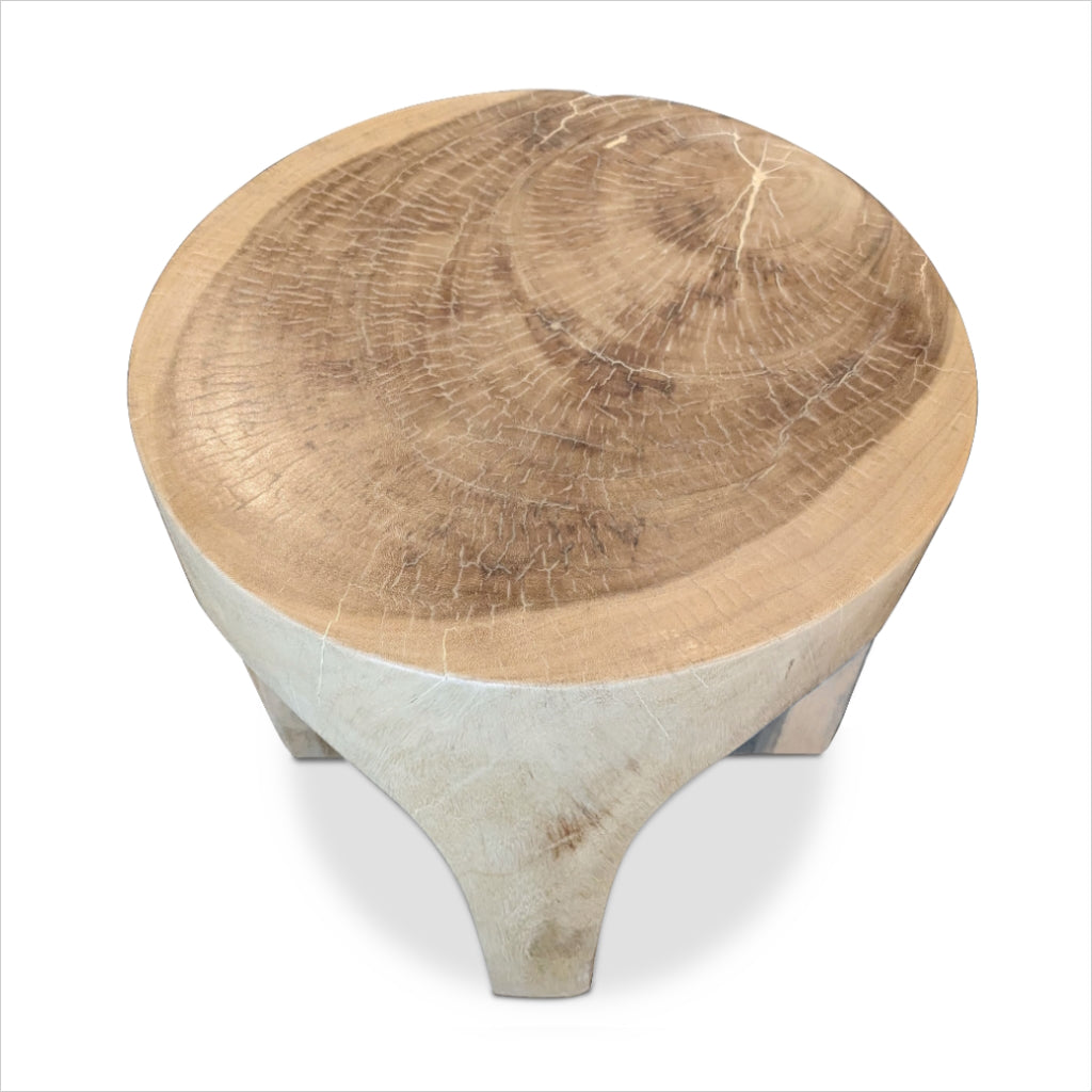 Le tabouret Otto est sculpté en bois d'acacia avec une finition blanchie qui met en valeur le magnifique veinage. Chaque pièce est unique, avec des couleurs et des motifs dynamiques. Ces pièces sont polyvalentes, comme tabouret ou table d'appoint, seules ou en groupe.
