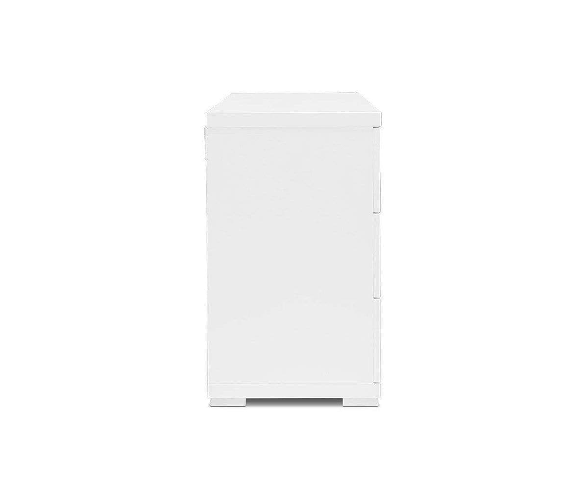 Un grand espace de rangement allié à un style raffiné ; fabriquée en Italie, la commode Palermo arbore une finition blanc brillant qui apporte une touche de sérénité à votre chambre. Trois larges tiroirs aux lignes épurées et des poignées chromées fumées complètent son esthétique.