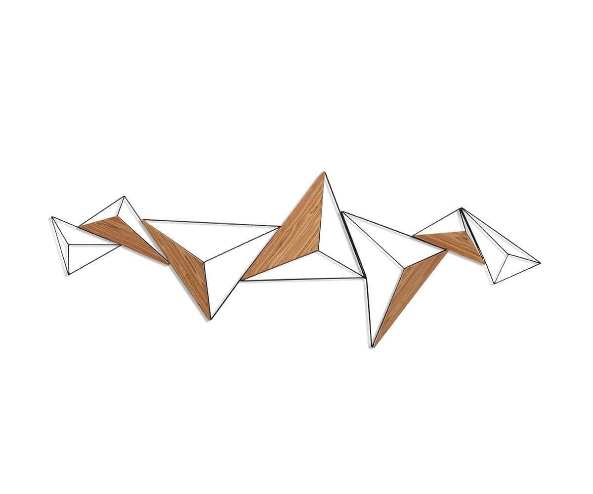 L'œuvre d'art mixte Prisma offre un jeu captivant entre les espaces positifs et négatifs. Des contours métalliques, visuellement délicats mais résistants, sont associés à des triangles solides et naturels.