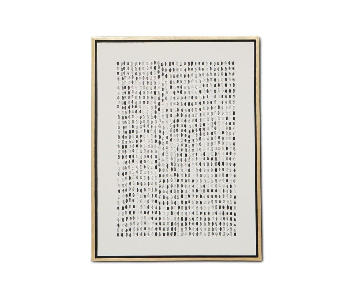 L'œuvre d'art graphique Puliga offre des couleurs et des textures subtiles pour dynamiser un mur vide. Réalisée à la peinture acrylique sur toile, elle est encadrée de feuilles d'or.