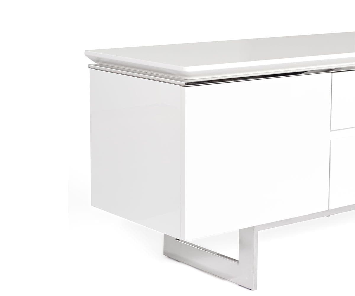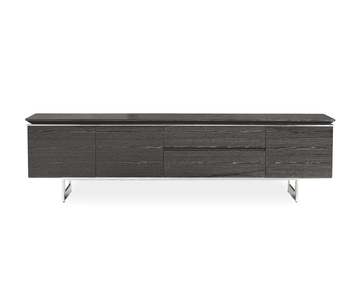 Le meuble multimédia Sieva, élégant et sophistiqué, offre un espace de rangement généreux. Sous tous les angles, ce meuble capte l'attention par ses lignes épurées, notamment son plateau biseauté intrigant et son piètement en acier inoxydable. Son motif bois saisissant est sublimé par une finition brillante contemporaine, qui lui permet de rayonner où que vous le placiez. Doté de trois portes qui s'ouvrent sur un grand espace de rangement et de deux tiroirs spacieux, ce meuble multimédia est conçu pour offrir un espace de rangement élégant pour tous vos appareils multimédias ou votre salon.
