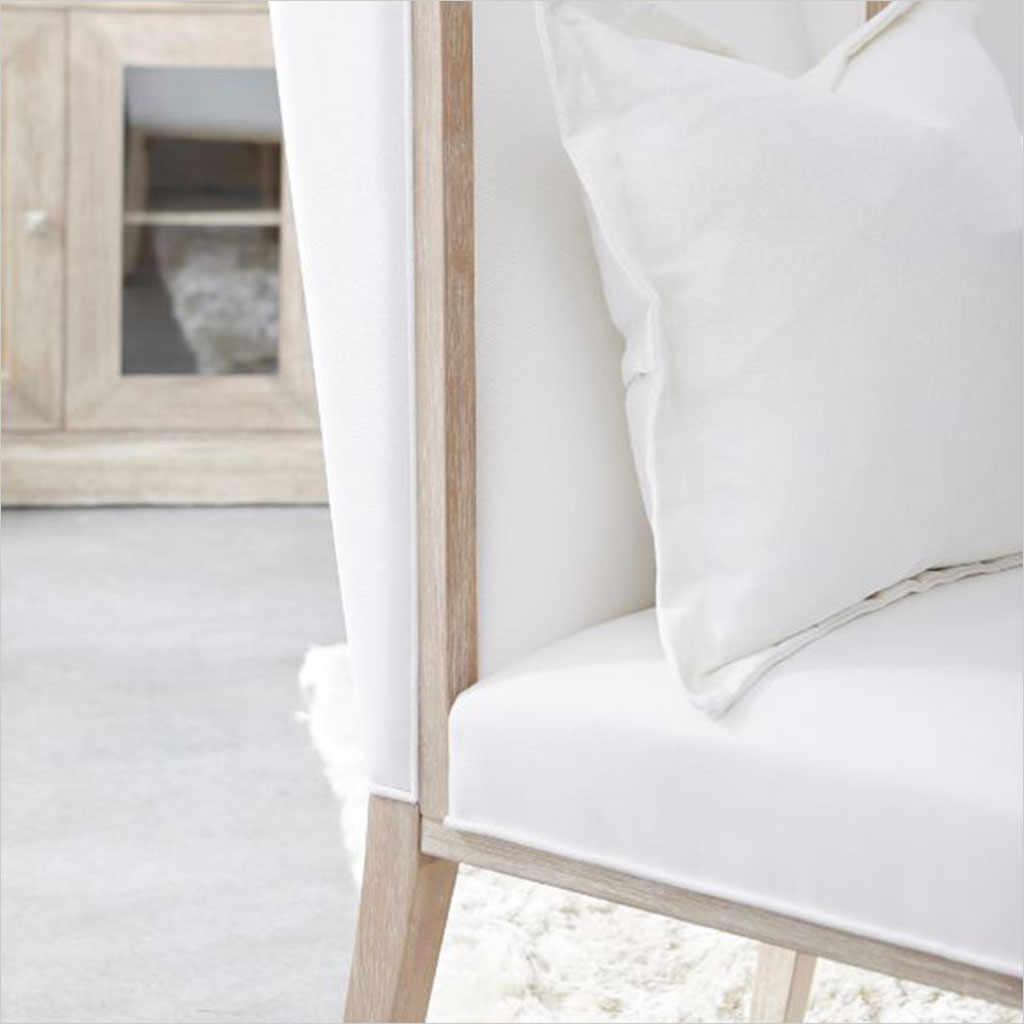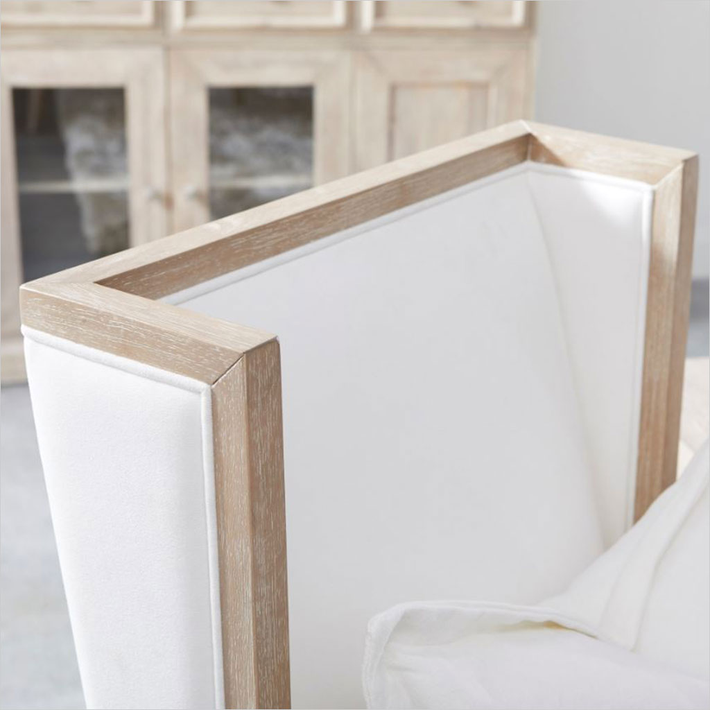 Conception à dossier ailé, dossier avec cadre en bois massif.