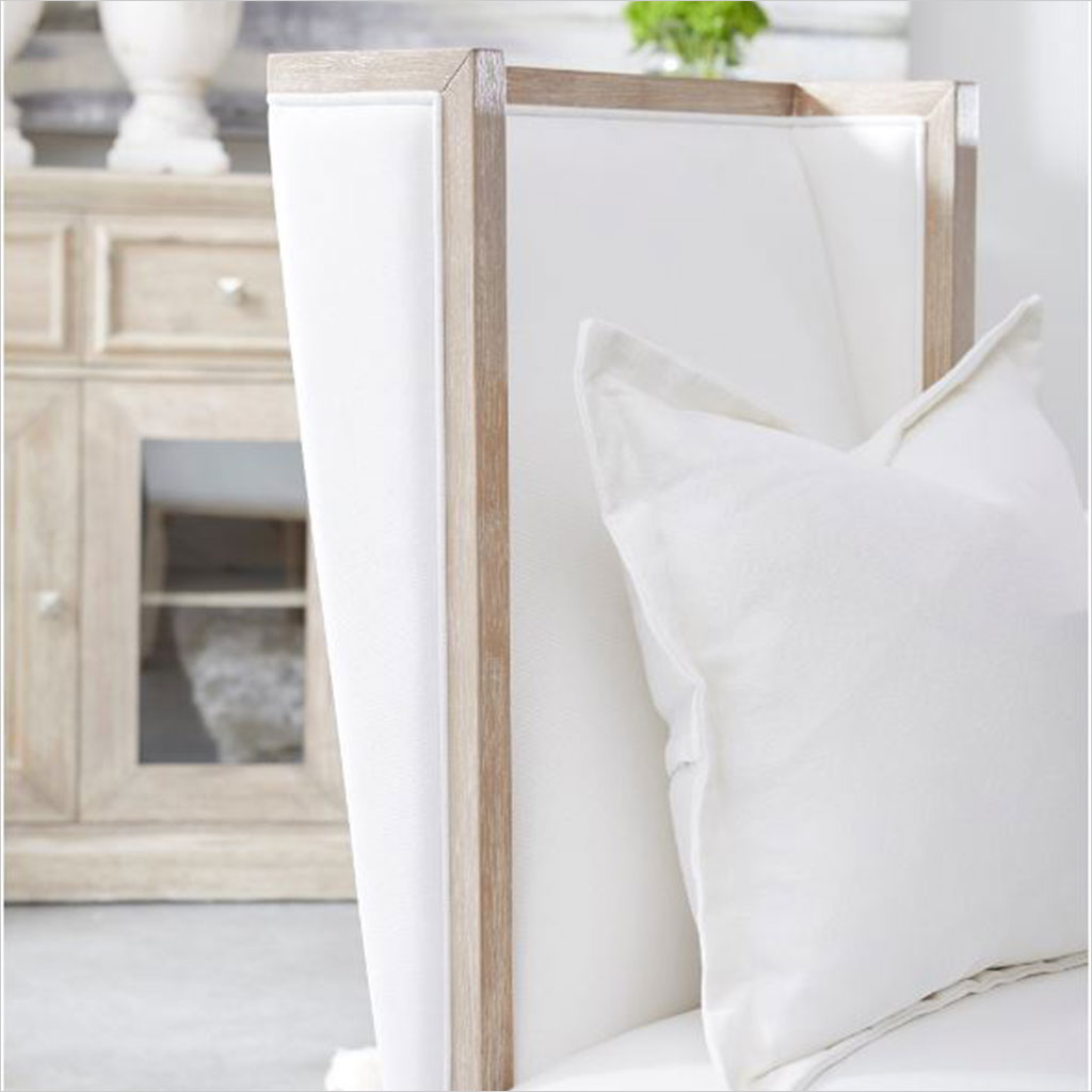 La chaise à dossier à oreilles Sterling est recouverte d'un tissu performant, ce qui en fait un gagnant polyvalent pour tout décor de salle à manger.