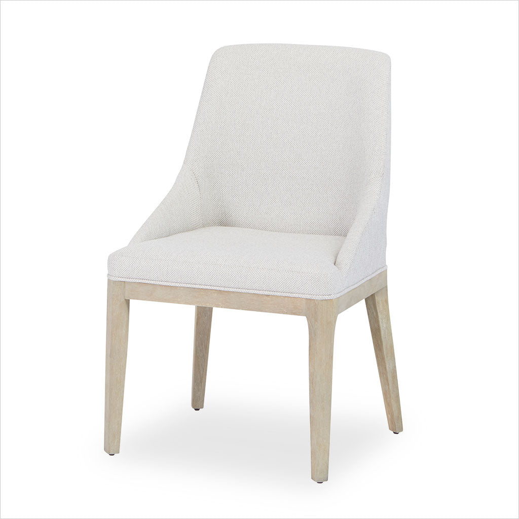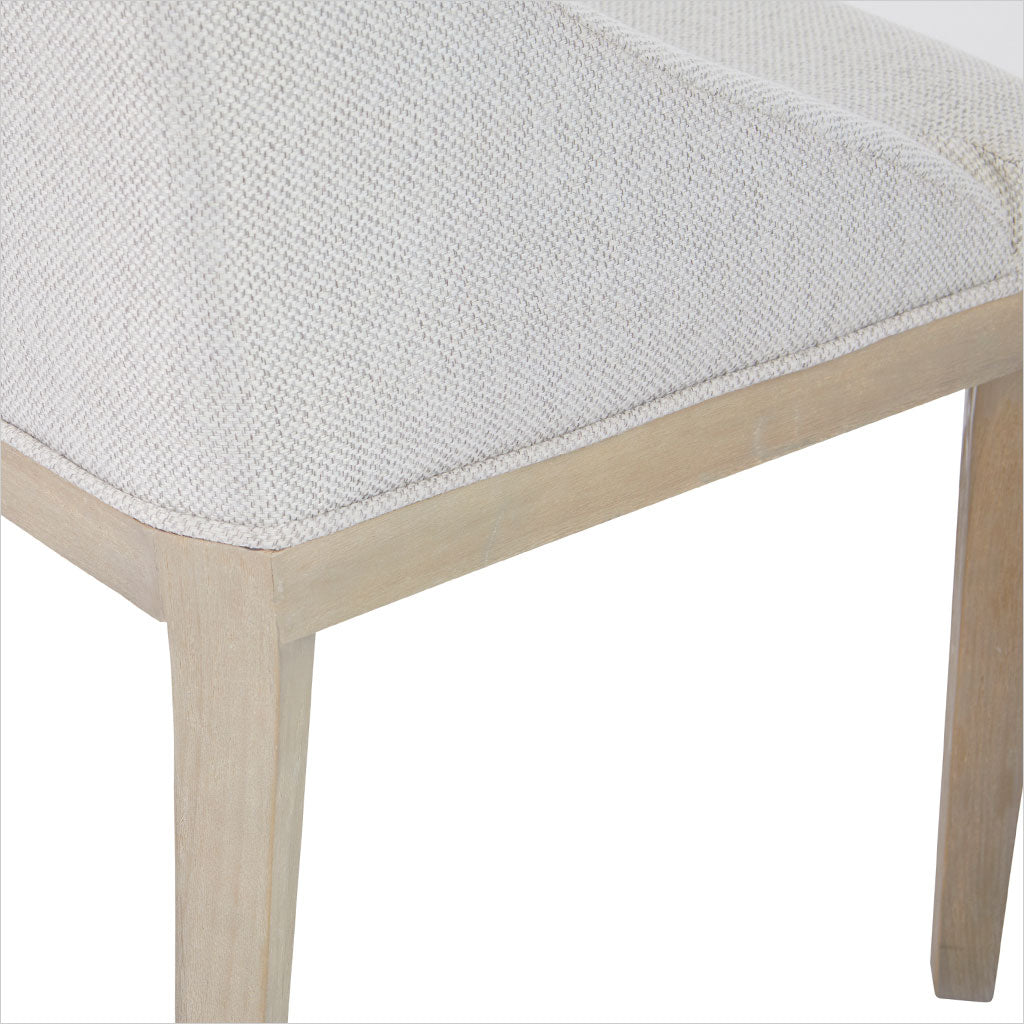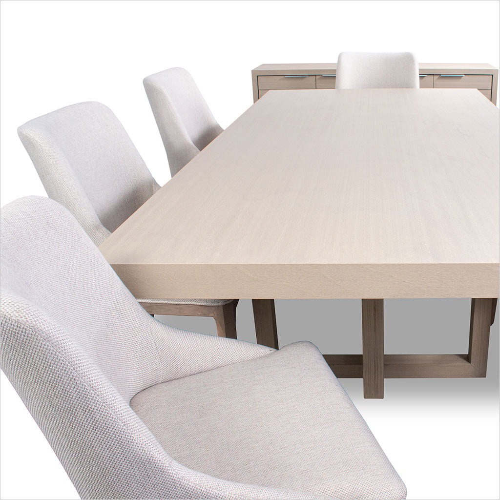 La chaise de salle à manger Tulum fait partie d'une nouvelle collection en tissu Dune Clair et pieds en peuplier brossé. Le dossier et les accoudoirs sont profilés pour un confort optimal. Les pieds légèrement fuselés complètent son design élégant. La collection propose également deux tailles de table à manger : buffet, console, table basse et table d'appoint.