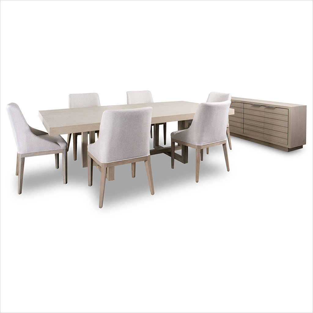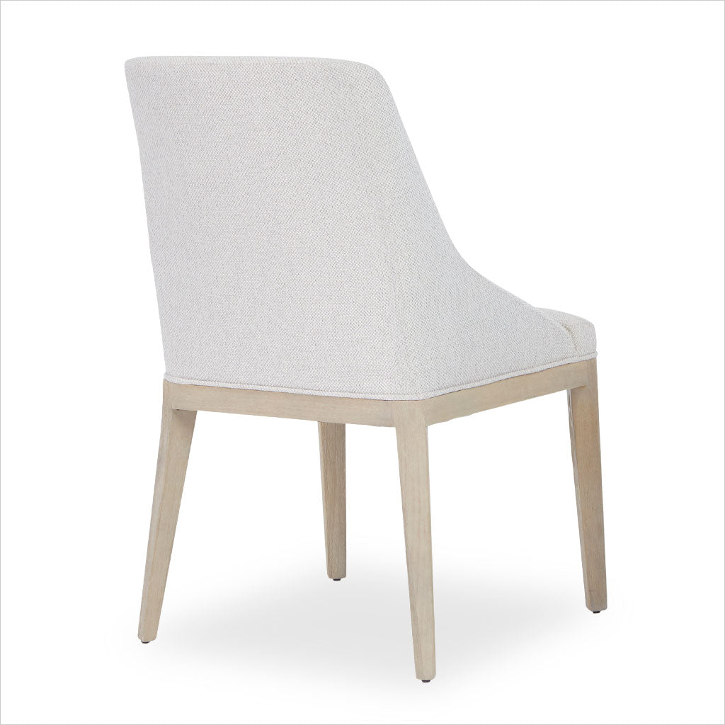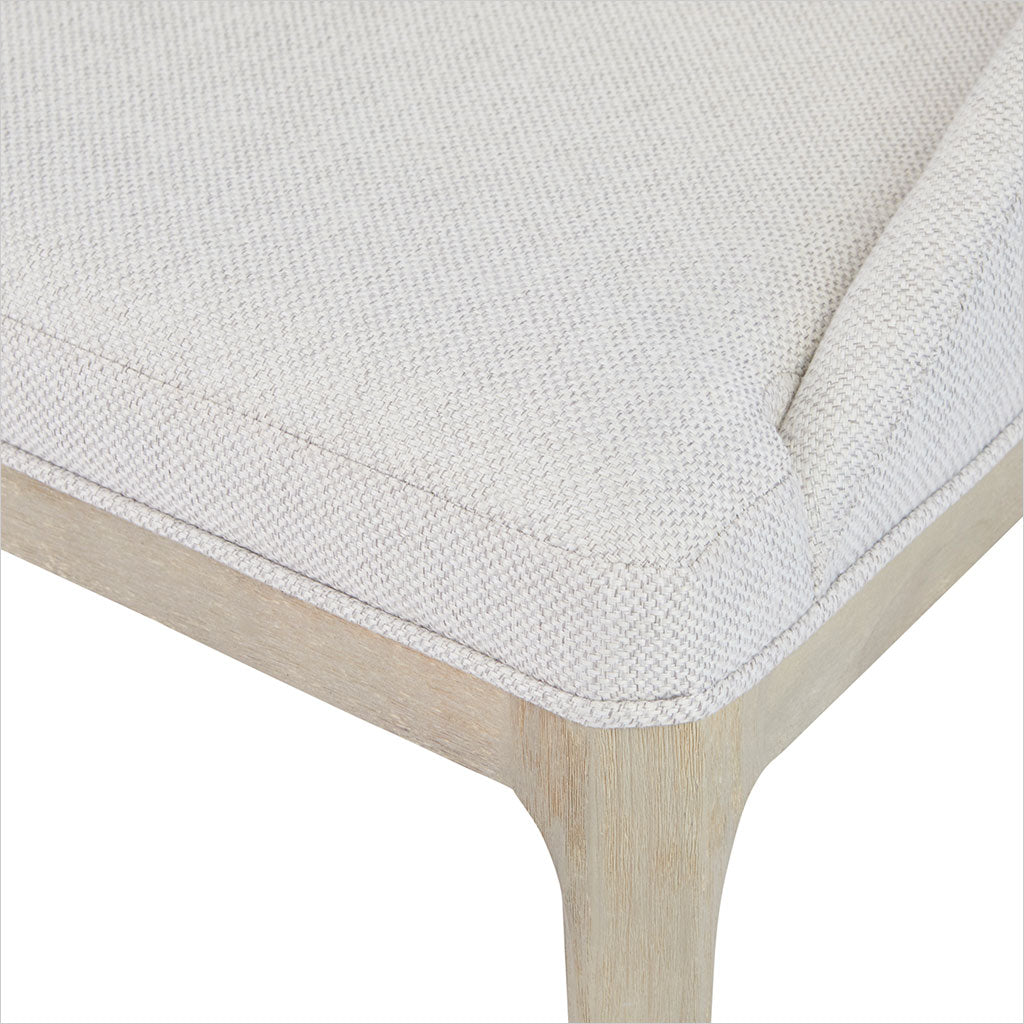 La chaise de salle à manger Tulum fait partie d'une nouvelle collection en tissu Dune Clair et pieds en peuplier brossé. Le dossier et les accoudoirs sont profilés pour un confort optimal. Les pieds légèrement fuselés complètent son design élégant. La collection propose également deux tailles de table à manger : buffet, console, table basse et table d'appoint.