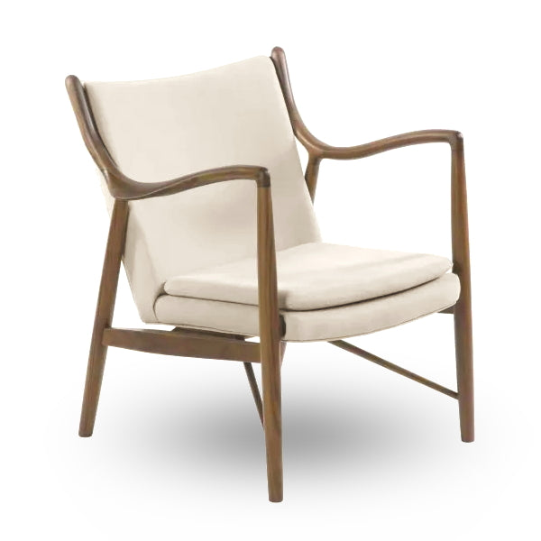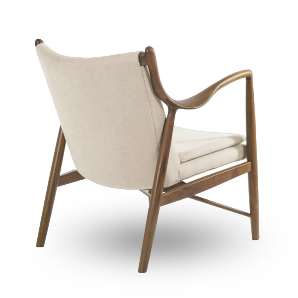 La chaise Vigo est une pièce maîtresse, clin d'œil au design scandinave. Sa structure en noyer est façonnée à la main avec précision pour créer des lignes organiques et modernes. Son revêtement et son coussin d'assise sont en naturel.